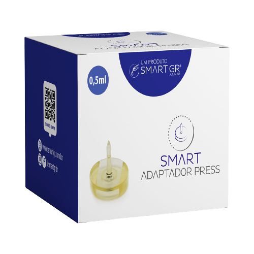 O Smart Adaptador é um item descartável utilizado em conjunto com a Caneta Pressurizada Smart Press. Foi desenvolvido especificamente para abastecer as ampolas de ativos de alta performance.