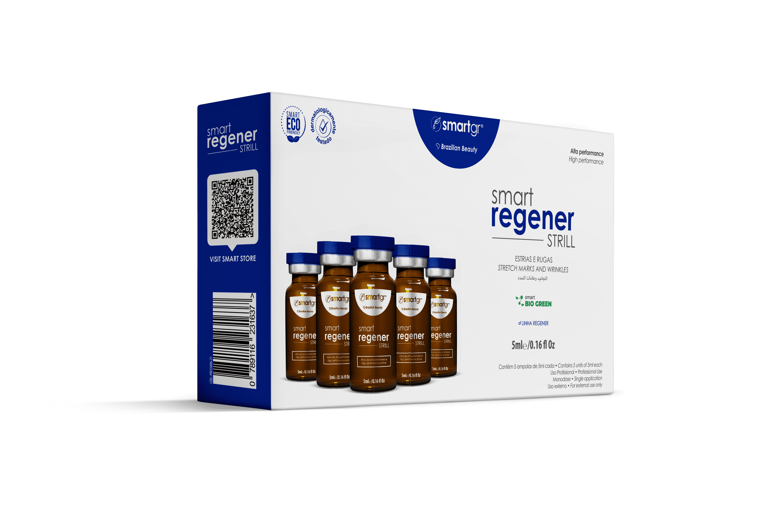 Smart Regener Strill fluido concentrado é um ativo de alta performance que auxilia na regeneração do tecido cicatricial, estimulando a produção de colágeno e elastina, garantindo mais maleabilidade ao tecido e contribuindo para a melhora do aspecto da pele.